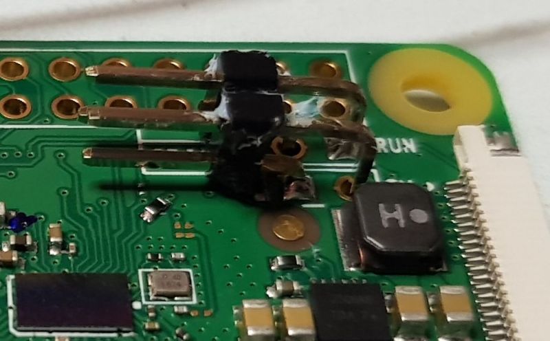 2、我从电视连接直角40排针插座的末端剪断了四个连接器部件,并将其焊接到电路板上。项目只需要两个连接器,但将四个连接器放在一起可以提高稳定性。