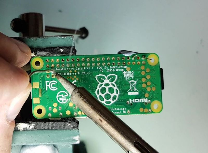 在这个部分,我将尽可能多地节省空间,以便重新组装完所有原装电子设备后仍能可以安装树莓派,因此我决定使用通用I/O端口供电而不是使用Micro USB线。