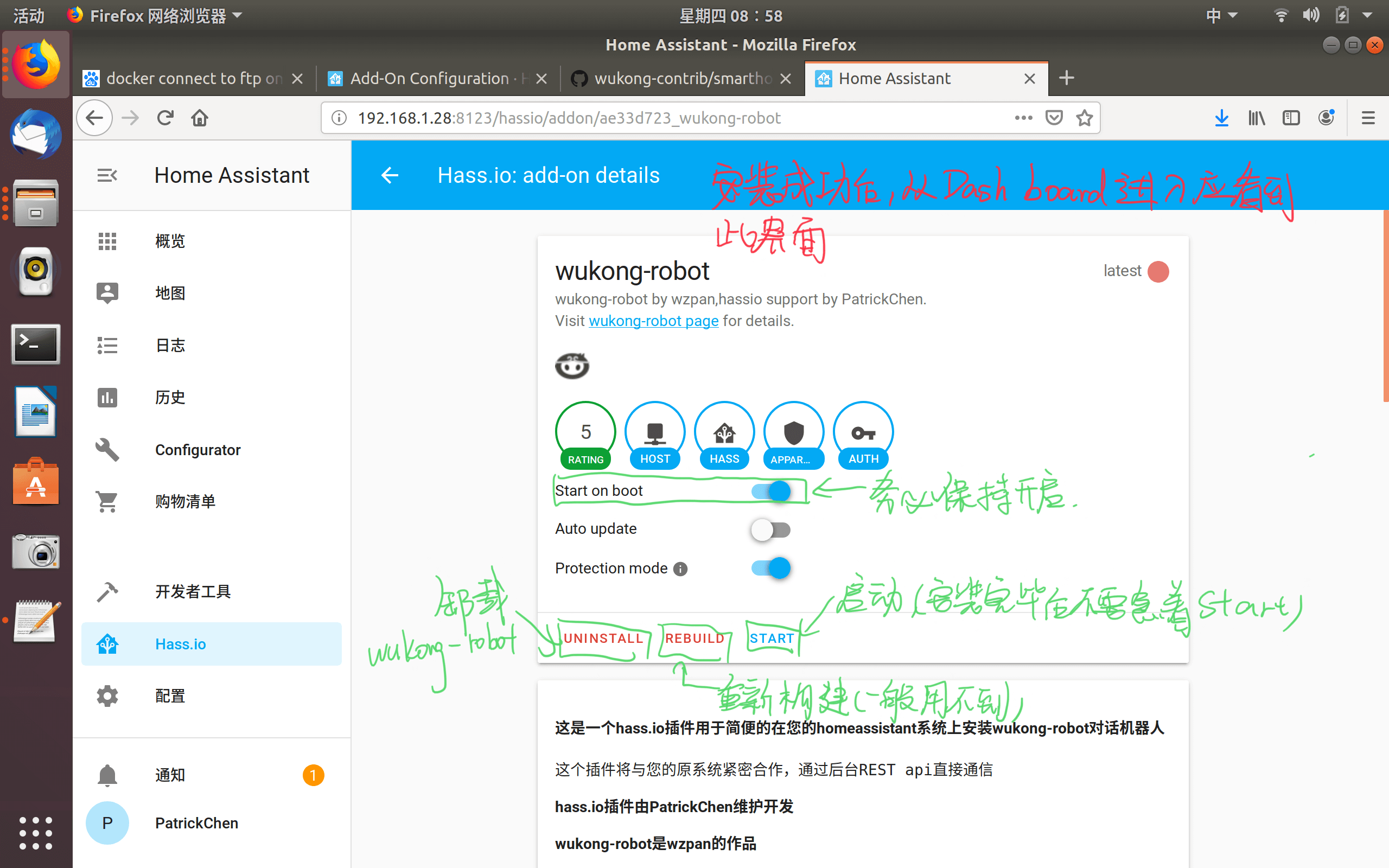 第五步:点击 INSTALL,等待 hass.io 完成安装,由于要下载大量文件进行自动构建,因此会消耗较多时间,请耐心等待。(视网络环境而定)