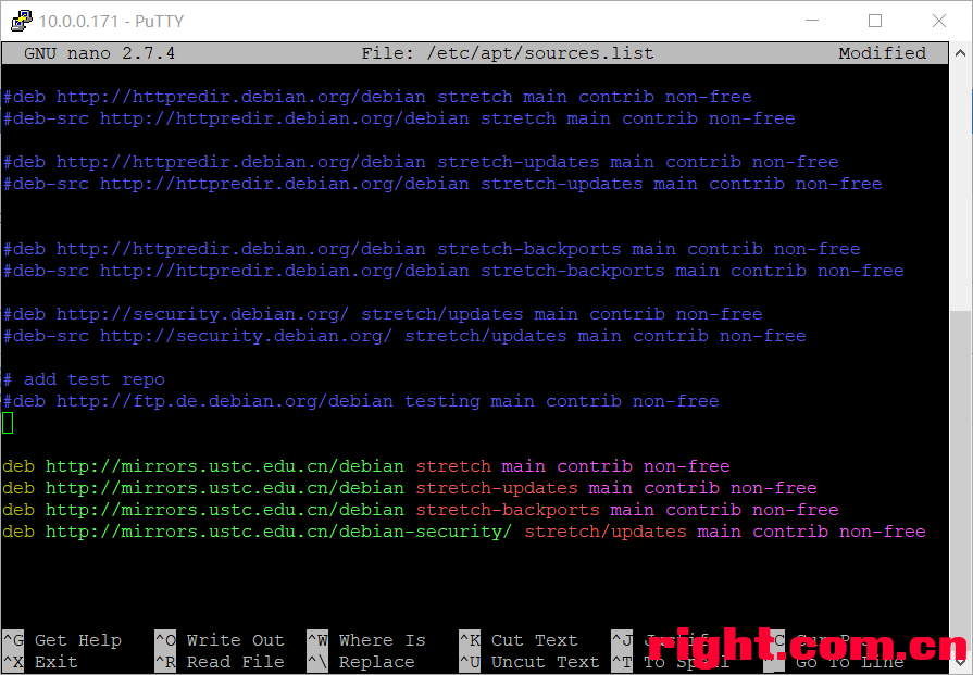 3、在原先的源前面加#号注释掉,并将国内源复制过去