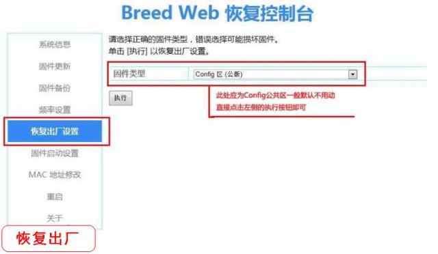 这个操作可以在breed中,完成如下图所示,也可以在路由器启动后长按reset按键。