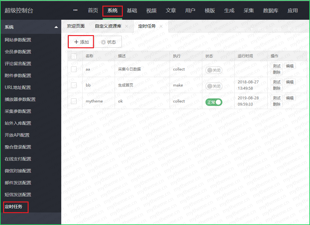 3.复制链接后台选择系统--定时任务,选择添加,我们来新添加一个定时任务。