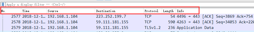 Step3:输入过滤条件获取待分析数据包列表 ip.addr == 211.162.2.183