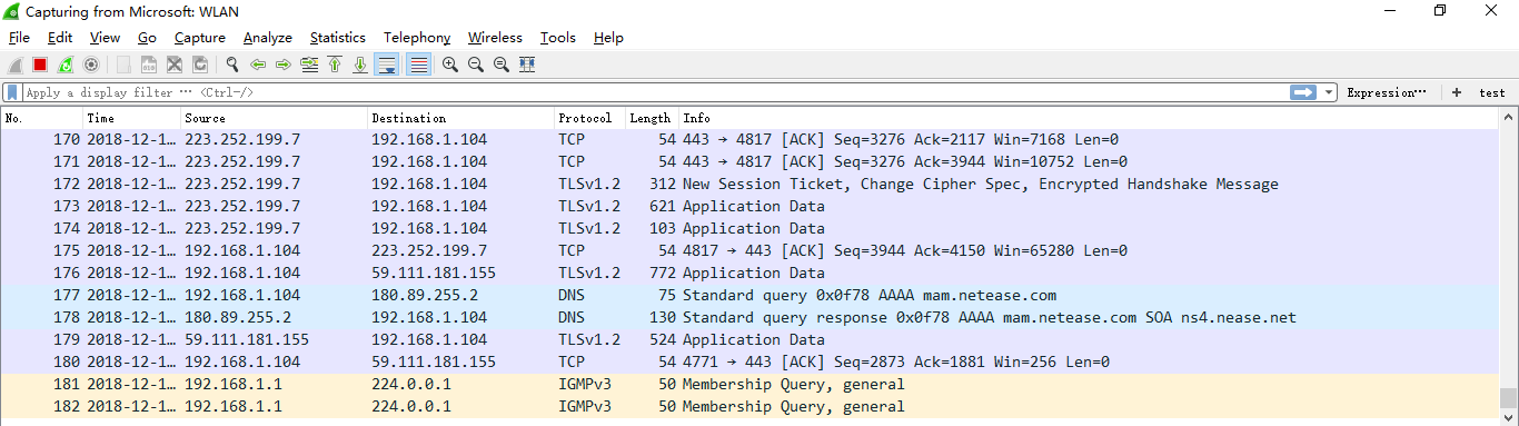 看到这, 基本上对wireshak有了初步了解。
