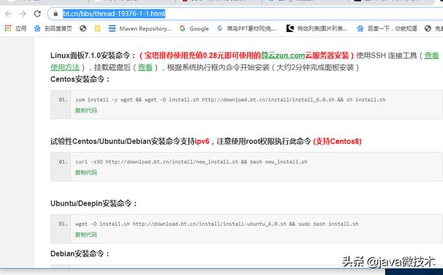 4.准备好服务器,然后大家登录后,可以选择这种操作安装宝塔