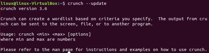 更新crunch,命令:crunch –update