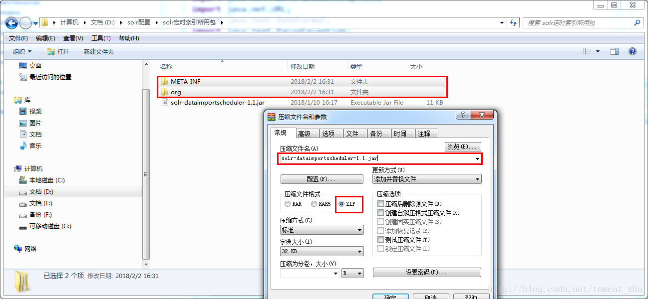 找到之后将之替换,之后重新打包,注意:减压出什么东西,打包的时候再打包进去,选择压缩文件格式为zip,并将生成的压缩包文件的后缀名设置为jar。如下图: