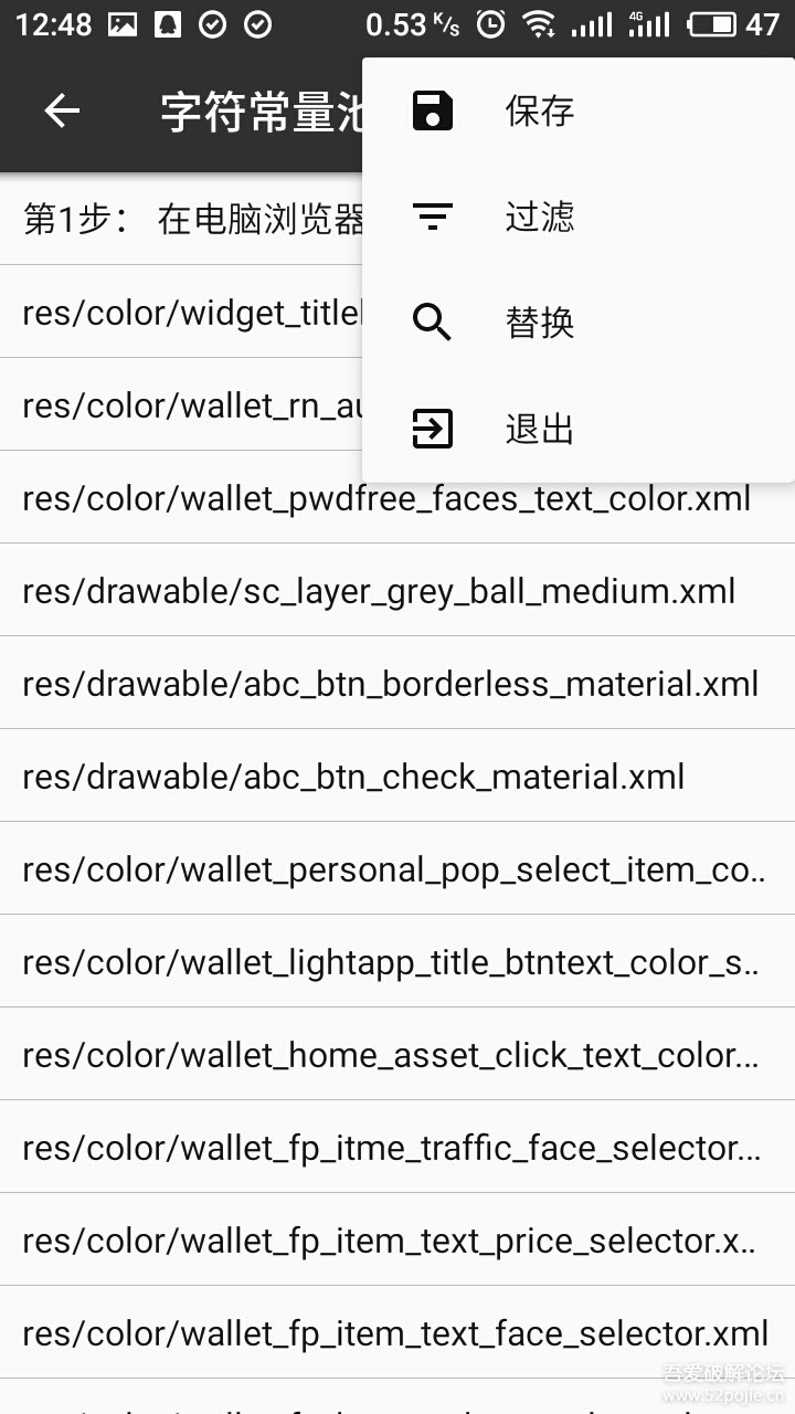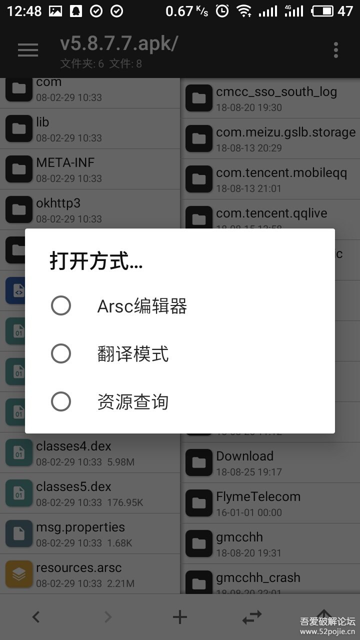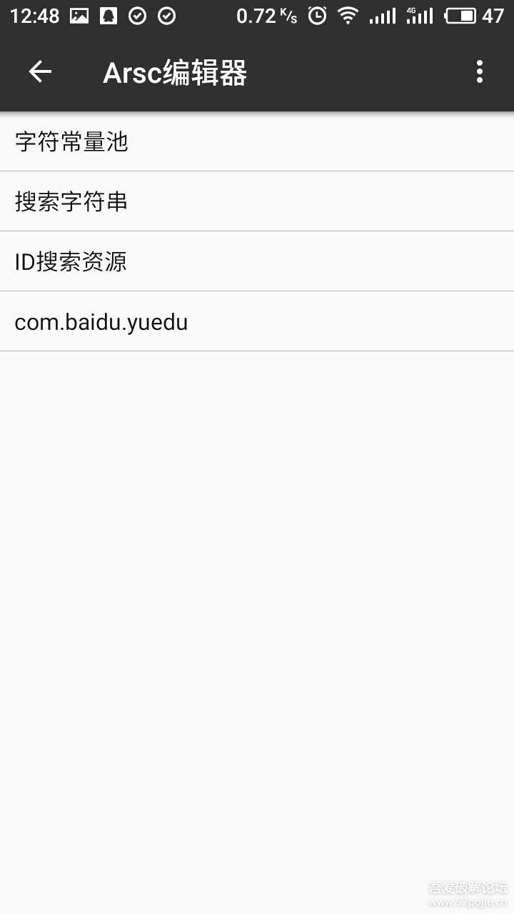 打开方式选择第一个arsc编辑器。然后选择字符常量池。