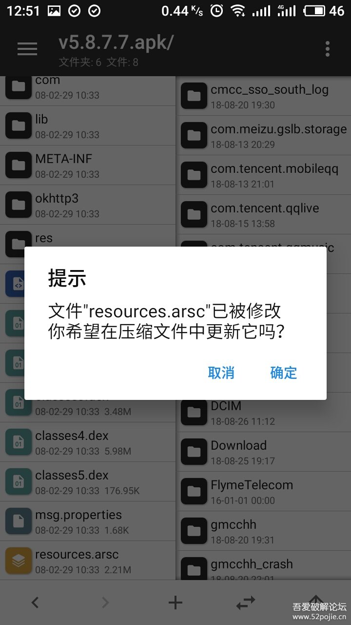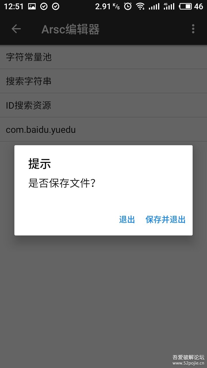 然后我们就点击一下后缀名为arsc的文件,软件名称以及相关文字都在里面修改。