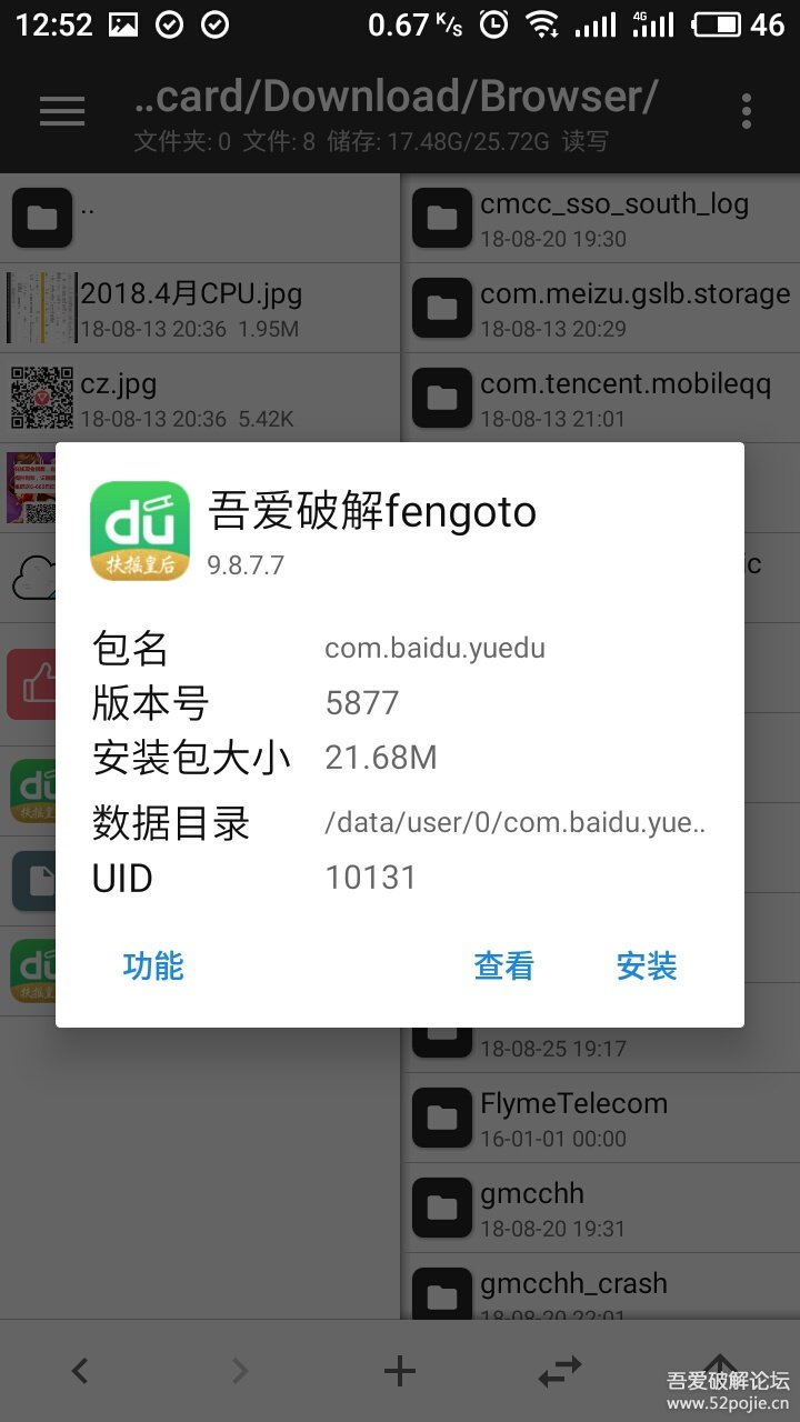 我这里以百度阅读这个apk为例,安装一下,可以看到名称,点进去软件也可以看看