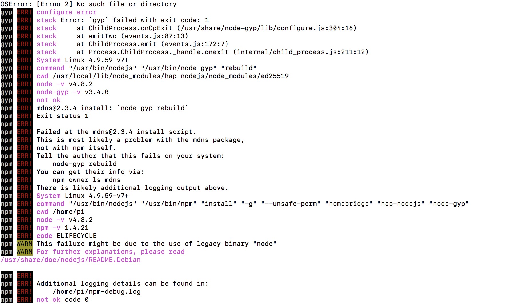 如最后一条安装命令出现如下报错