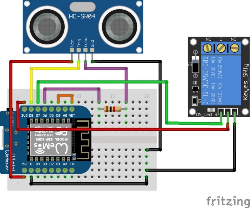 WemosD1 mini 上的水泵控制程序,用来控制继电器和 hcsr04 超声波传感器。