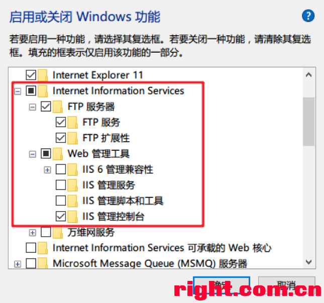 2) 如下图所示,勾选FTP相关的服务,并点击确定,稍等系统配置完成;