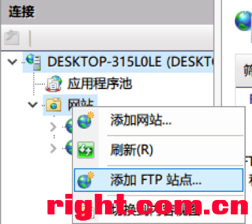 4) 在【网站】目录下右键,添加FTP站点;