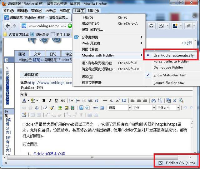 修改Firefox 中的代理比较麻烦, 不用fiddler的时候还要去掉代理。 麻烦