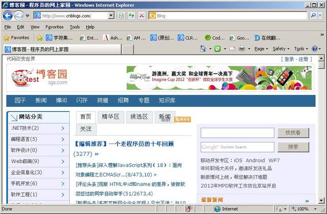 5. 再用IE博客园首页, 你会看到首页的图片用的是本地的。