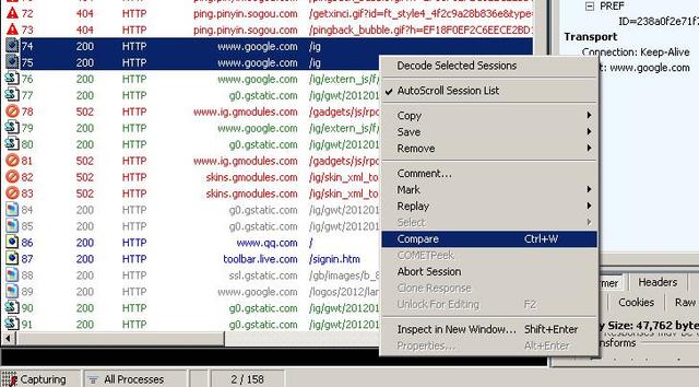 Fiddler中会话比较功能